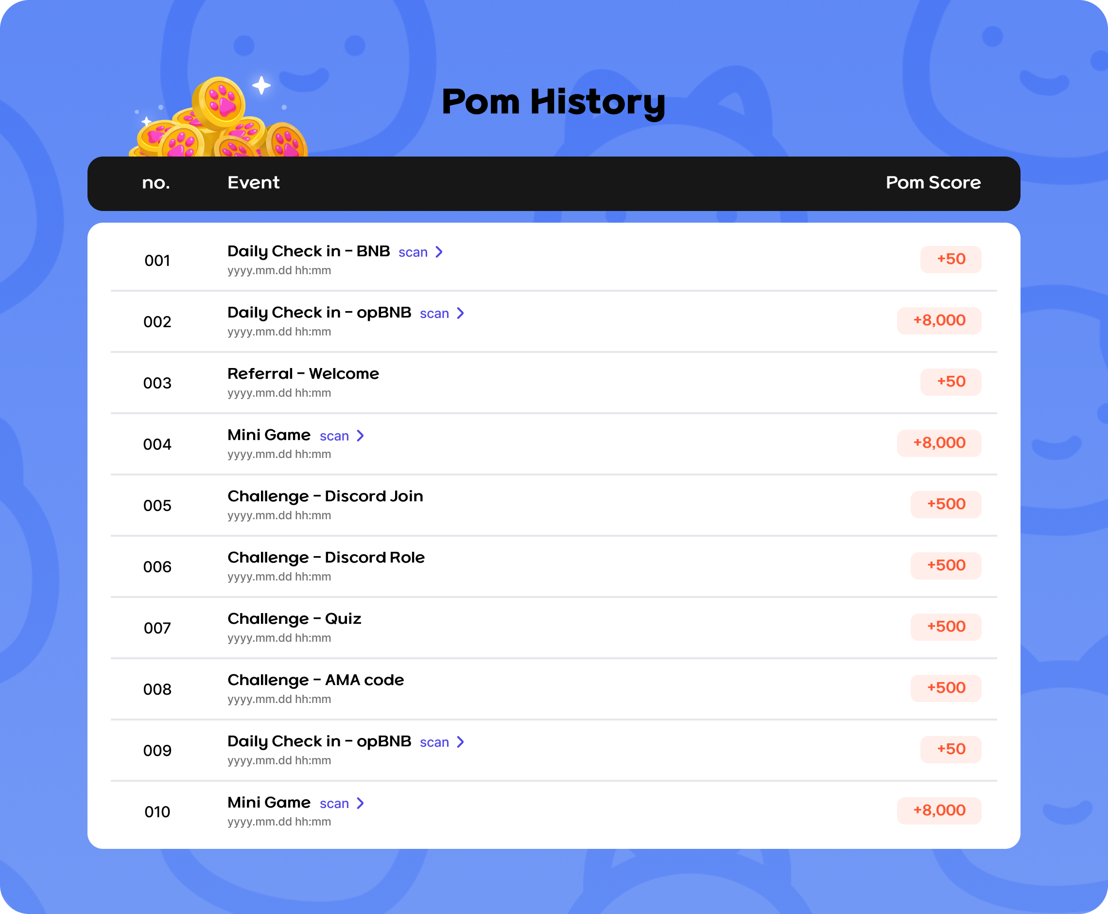 In My POM History section, you can see how you collected POM(points) and which tasks you completed to earn rewards.